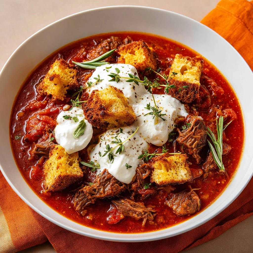 Ladle the hot stew generously into bowls. Top each serving with a dollop of sour cream or Greek yogurt, a scattering of your homemade crispy croutons, and a few fresh thyme sprigs for a beautiful, aromatic garnish.