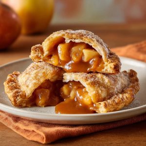 Spoon about 2 tablespoons of the apple caramel filling onto one half of each pie crust circle, leaving a small border around the edge.