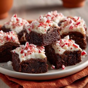Once the brownies are completely cool, spread the peppermint cream cheese frosting evenly over the top.